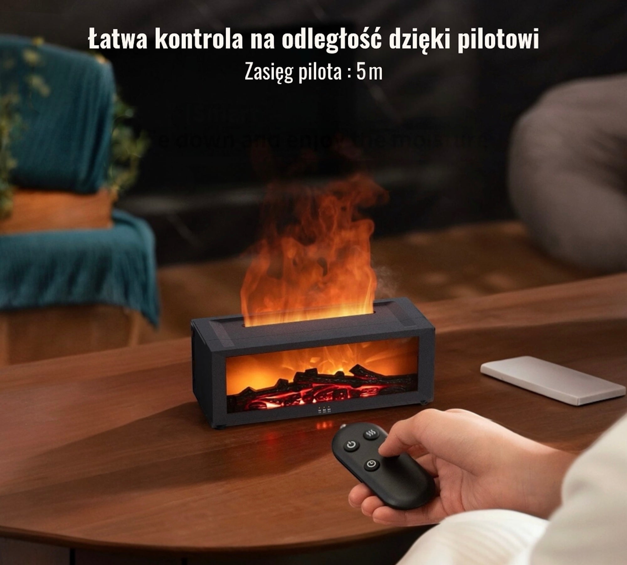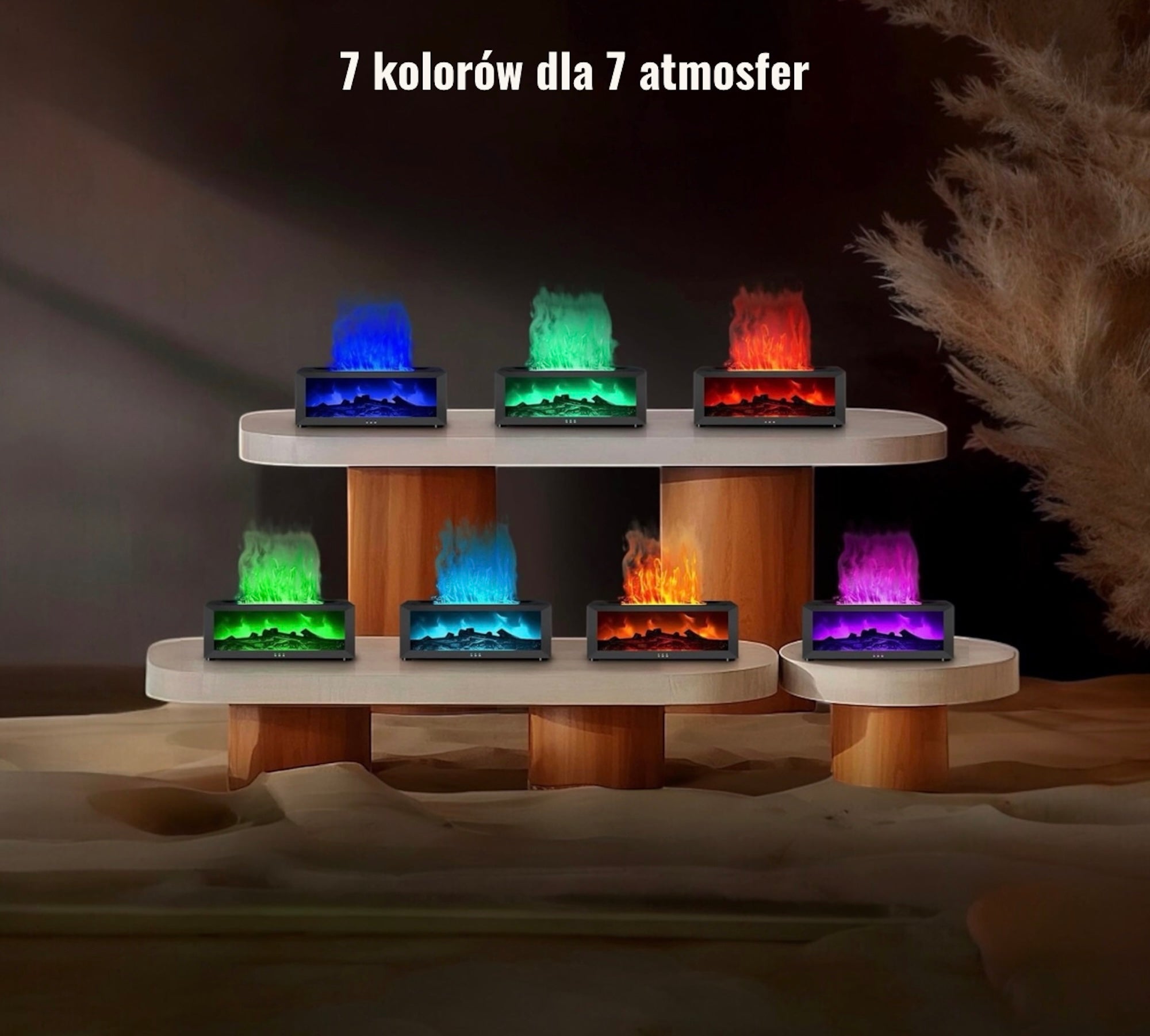 Humilora jest wyposażona w 7 kolorów oświetlenia ambientowego. Rozpylanie i oświetlenie kominka można sterować niezależnie, co pozwala tworzyć różne efekty w zależności od nastroju lub okazji. Dzięki delikatnemu światłu może również służyć jako kojąca lampka nocna, idealna do sypialni.